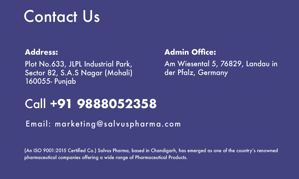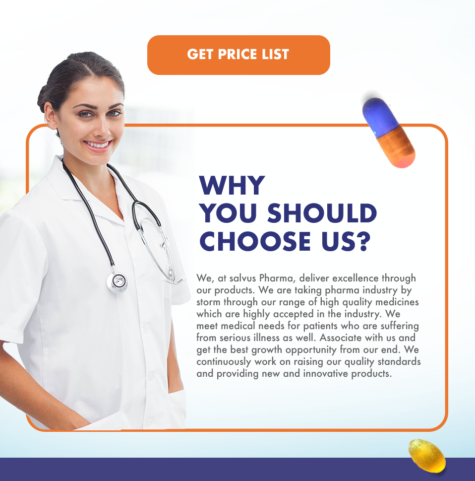 At Salvus Pharma, our product portfolio is the cornerstone of our success. We offer a wide range of top-quality pharmaceutical products, including tablets, capsules, injections, and more. With a focus on innovation, quality, and affordability, we are committed to meeting the diverse needs of our clients and the communities we serve.